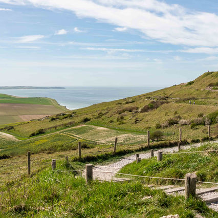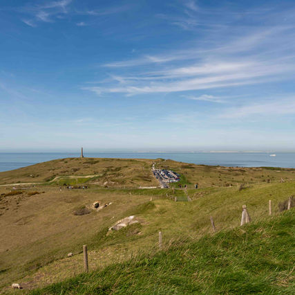 Départ et retour au pied du monument Dover Patrol, avec une vue imprenable sur le Cap Gris Nez et la baie de Wissant, Calais et les côtes anglaises.